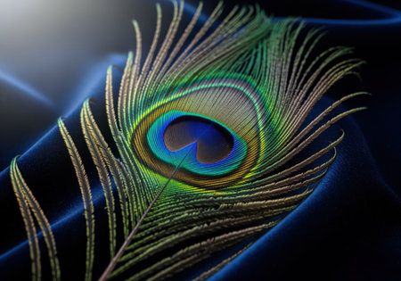 Close-up of vibrant peacock feathers, macro photography creating stunning background