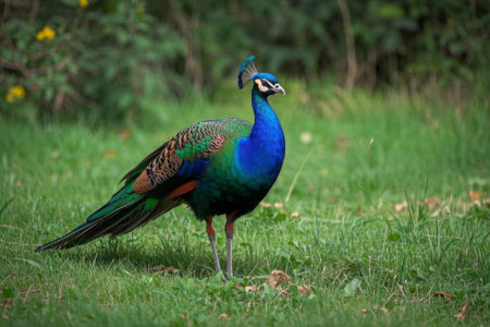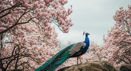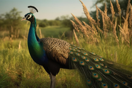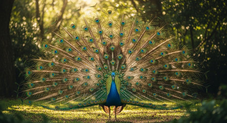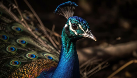 Majestic peacock displays vibrant beauty in nature generated by artificial intelligence