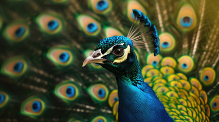 Close-up of vibrant peacock feathers, macro photography creating stunning background