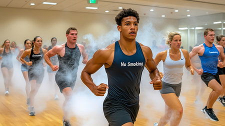 Intense Group Fitness Class Promotes Health and Wellness, Encouraging Smoke-Free Lifestyles.