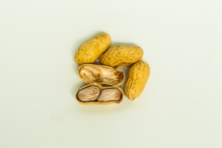 Peanuts. unpeeled nuts isolated on white background. Peanut macro. Selective Focus