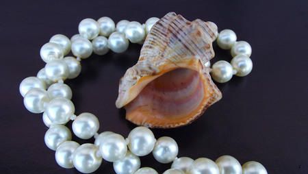 jacobaeus scallop shell with pearl necklace