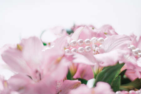 luxury white beige pearl jewelry with soft flower for valentine or wedding background