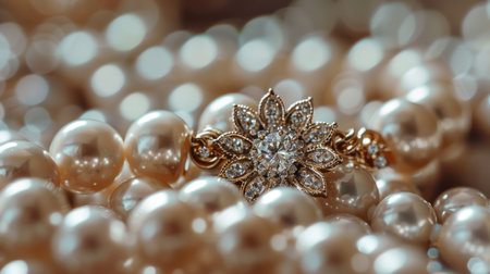 Image featuring elegant pearls on a soft background with gentle light and shimmer. This creates an atmosphere of luxury and beauty making it ideal for artistic compositions.
