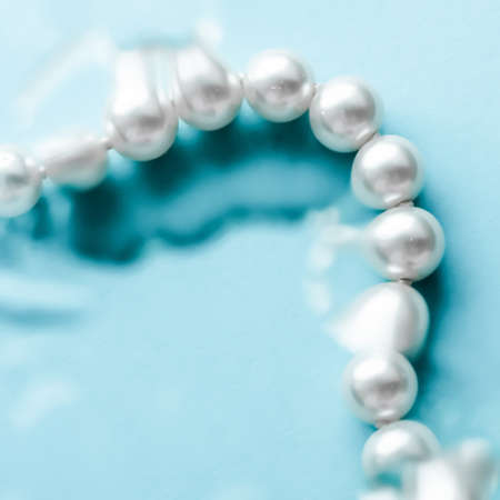 Jewelry, branding and gems concept - Coastal jewellery fashion, pearl necklace under blue water background, glamour style present and chic gift for luxury jewelery brand, holiday banner design