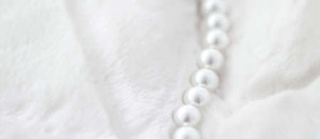 Jewelry branding, elegance and sale concept - Winter holiday jewellery fashion, pearl necklace on fur background, glamour style present and chic gift for luxury jewelery brand shopping, banner design
