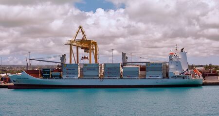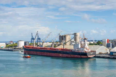 Port Louis, Mauritius - December 25, 2015: Bulk Carrier Ship JS Colorado in Port Louis, Mauritius. Port Louis was already in use as a harbor in 1638.