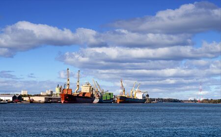 Industrial port, shipyard, cargo craines