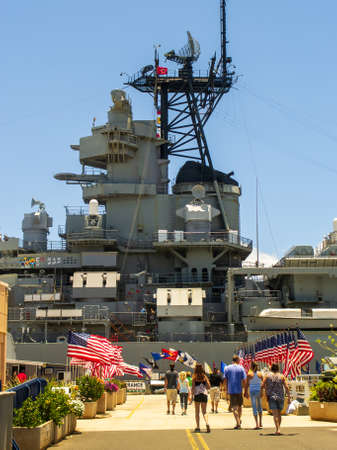 Pearl Harbor, Hawaii - May 03, 2015: People walking to the Battleship Missouri