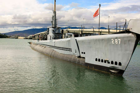 HONOLULU, OAHU, HAWAII, USA - AUGUST 21, 2016: USS Bowfin Submarine SS-287. Pearl Harbor historic landmark, National historic and patriotic landmark memorial of Japanese attack in world war 2.