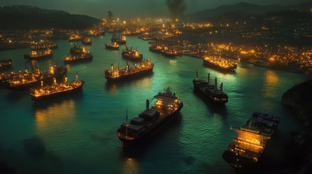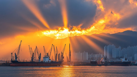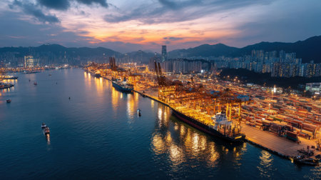 Beautiful view of the container port of Kaohsiung at dusk