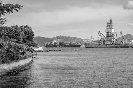 Guanabara Bay, Rio de Janeiro, Brazil - CIRCA 2021: Platform for the exploration of the oil industry (offshore). This bay is part of the Santos Basin and is an active field