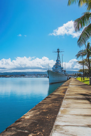 Pearl Harbor, Hawaii, USA - September 23, 2018: USS Missouri docked in Pearl Harbor.