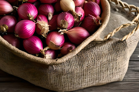 AI generated image of a bag of shallots. Shallots is a very important ingredients in cooking