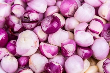 Freshly dug organic onions. New crop onions as background. Fresh shallots close up
