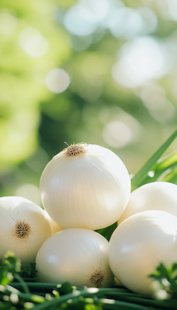 Fresh White Onions in Garden, Close-Up of Organic Spring Vegetables Ready for Harvest