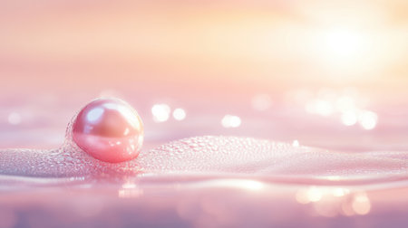 A stunning close-up image of a pearl resting on a smooth surface, enhanced by gentle light reflections and a dreamy pastel background.