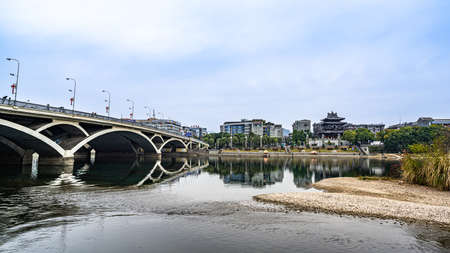 Urban architectural landscape and river bank in Nanning, Guangxi, China