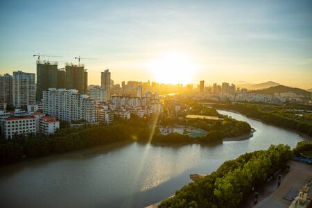 Sunset over the river in the city of Shenzhen, China