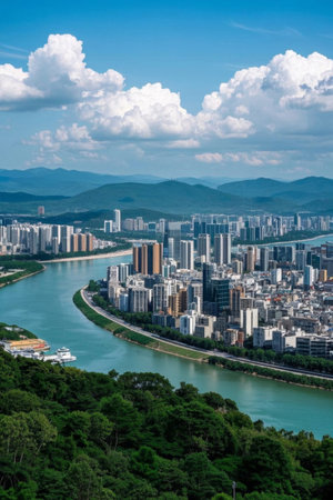 Sanya Cityscape Blue River and Clouds View