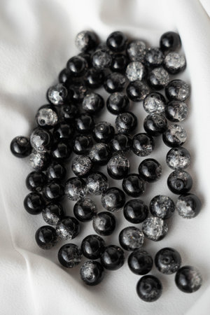 Dark or black speckled beads on white plate for crafting and jewelry making