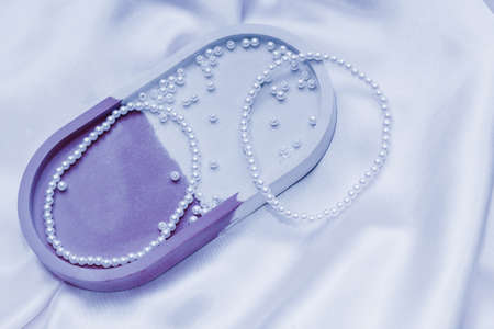 Jewelry, branding and gems concept - Coastal jewellery fashion, pearl necklace under blue water background, glamour style present and chic gift for luxury jewelery brand, holiday banner design