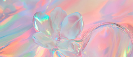 Soft holographic paint with delicate floral accents creating an abstract artistic display