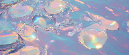 A soft, ethereal background with pastel rainbow colors and shimmering water ripples, creating a dreamy and fluid effect.