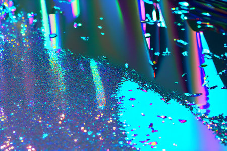 A close-up of a sparkling surface with a gradient from purple to cyan, ideal for vibrant background use in design and artwork. AI Generation