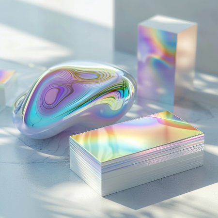 Iridescent surface with shifting colors creating a shimmering effect