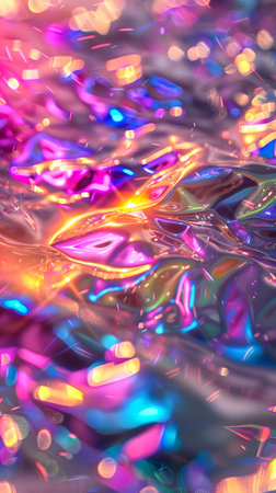 Vibrant abstract background with rainbow gradient light on a sparkling, faceted surface and bokeh lights. Perfect for festive, party, or futuristic...