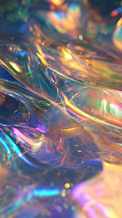 fluid or gel texture with a colorful and reflective shimmering iridescent background.