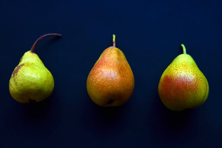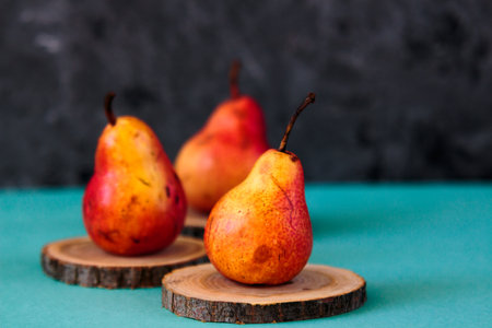 Pears. Three ripe juicy pears close-up arranged on gradient background