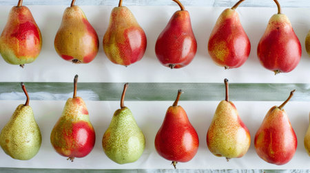 Two pears, one green and one red, are displayed in a studio setting highlighting their natural texture Perfect for healthy eating or product photography.