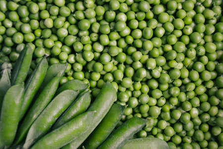 Green pea background. Pea freshly picked. Organic peas pods. Fresh vegetables. Healthy eating. Countryside garden harvest.