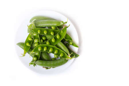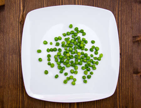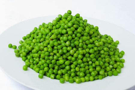 fresh sweet green peas on white plate