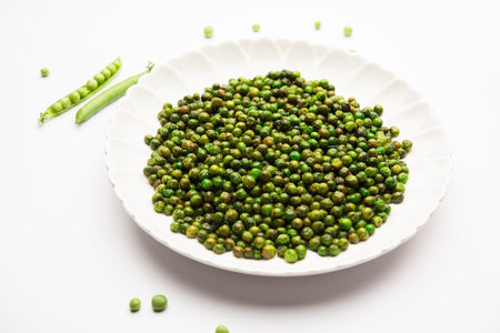green spicy peas fried or roasted namkeen, dry snacks or chakna consumed with cocktail drinks in India
