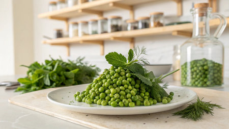 green peas on a plate. raw diet