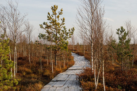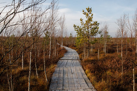 The landscape around walking path of Viru bog, one of the most accessible bogs in Estonia, Located in Lahemaa National Park