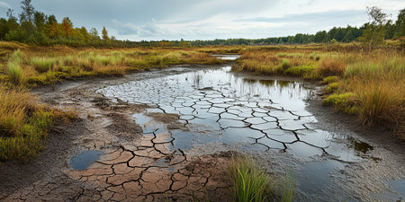 A view of a oncethriving wetland, now a dried landscape, highlights the devastating effects of prolonged drought and underscores the urgent global environmental crisis we face today