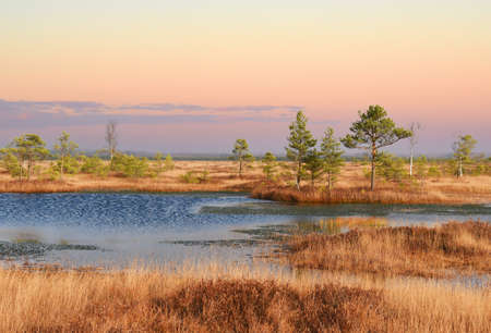 Autumn landscape in the swamp. Beautifull view of the swamp Elnya Belarus