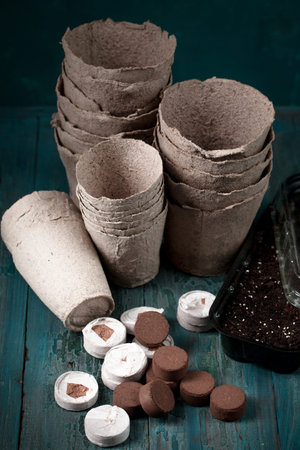 Peat Pots and Peat Tablets for Planting Seeds, Garden Rustic Still Life