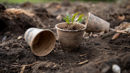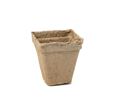 recyclable cardboard cup for planting seedlings and seeds isolated on white background. Ecological items, zero waste