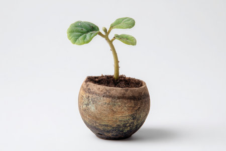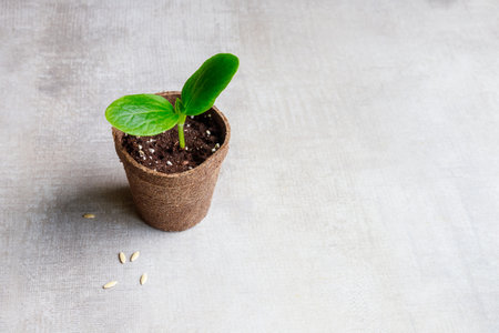 Zucchini seed which has sprout in biodagradable pot, zero waste and plastic free