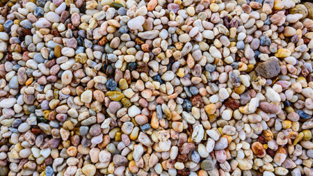 Detailed view of multi colored gravel stones in natural light