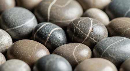 Banner design featuring polished river stones with empty contrast space for creative use in various applications