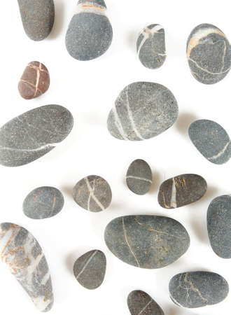 Sea Pebbles Isolated, Flat Round Stones, Gray Circle Rock Pieces, Spa Stones, Natural Sea Pebbles Pile on White Background Top View