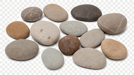 Round Pebble Stones Isolated on a Transparent Background. AI