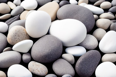 A visually appealing arrangement of smooth stones in various natural colors, showcasing textures and shapes against a neutral background. Ideal for design.