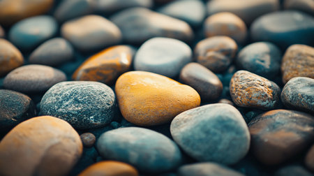 Closeup of river rocks, displaying diverse natural colors and textures, creating a beautiful and serene display